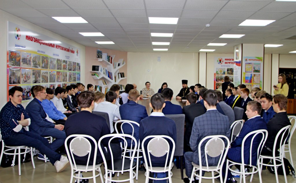 10 февраля 2023 года настоятель Прихода храма Святой Троицы иерей Виктор Мурзаков принял участие за круглым столом в ЦКиД «РОДНИКИ» с учащимися 8,9,10 и 11 классов школы № 2 городского поселения Пойковский.