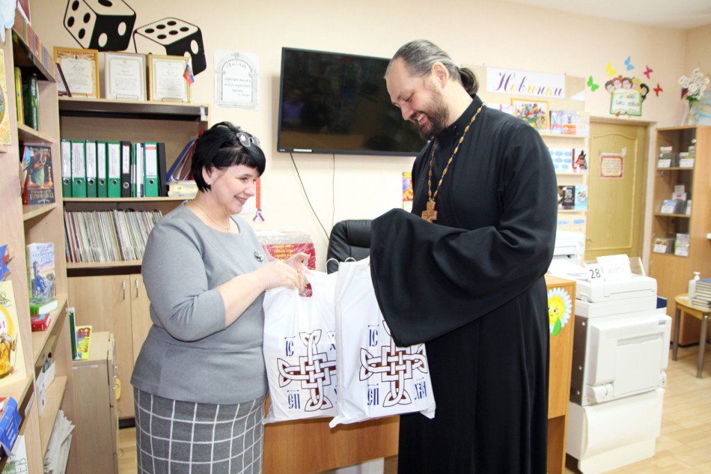 В начале встречи отец Виктор преподнес в дар подборку православных книг, в том числе книгу митрополита Ханты-Мансийского и Сургутского Павла «Русская Голгофа. Политические репрессии в Югре».
