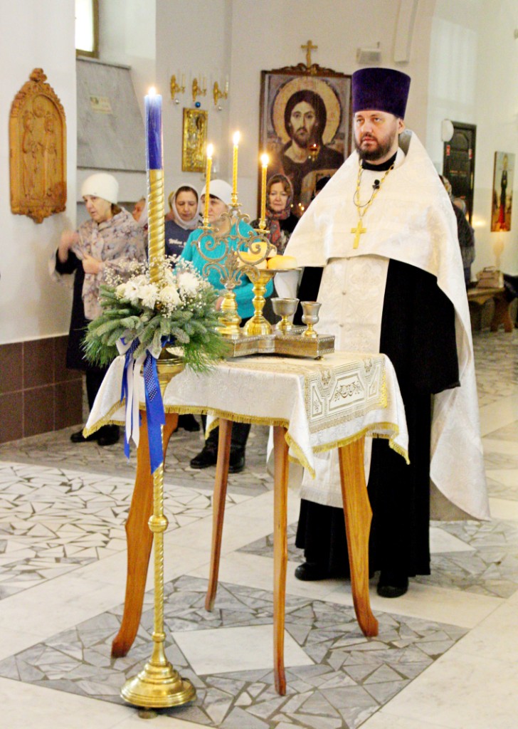 За богослужением настоятель Прихода произнес проповедь о Крещенской воде, церковной святыне, с которой соприкоснулась благодать Божия и которая требует к себе благоговейного отношения.