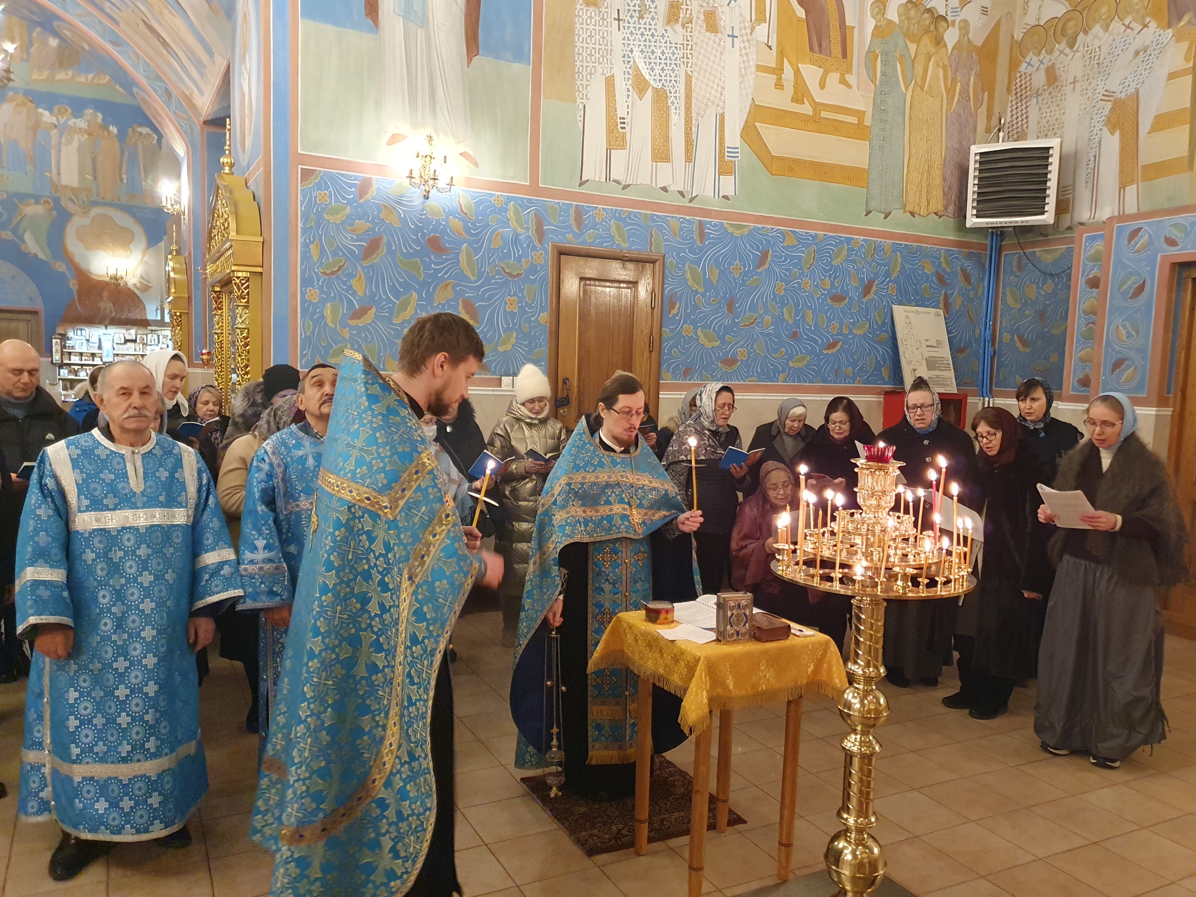 16 декабря, в канун дня памяти преподобного Иоанна Дамаскина, благочинный Нижневартовского городского благочиния, настоятель храма Рождества Христова протоиерей Сергий Шевченко совершил вечернее богослужение с акафистом перед образом Божией Матери.