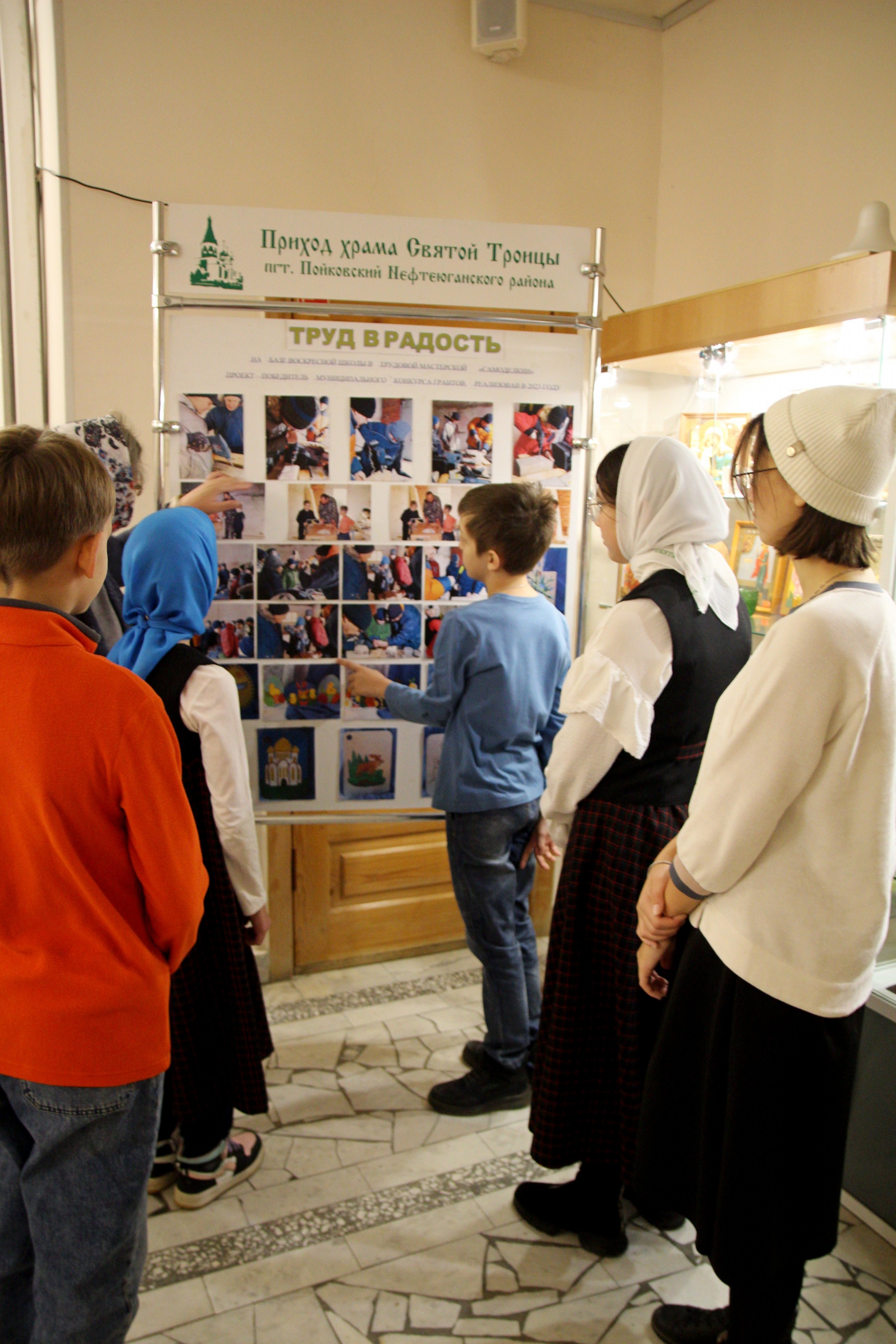 22 октября 2023 года перед прихожанами нашего храма развернулась фотовыставка творческих работ юных мастеров. Каждое изделие вырезано, обработано и отшлифовано под чутким руководством взрослых, вместе с сынишками посещающих трудовую мастерскую. А вот украшением заготовок занимались не только мальчишки, но и девочки Воскресной школы. На разделочных досках красуются православные храмы, лики святых, пасхальные мотивы, мотивы народных росписей и сюжеты природных зарисовок родного края. Подходит к завершению реализация проекта по трудовому воспитанию «Труд в радость» в Воскресной школе Прихода храма Святой Троицы пгт. Пойковский, на реализацию которого в 2023 году был выделен Грант Нефтеюганского района. Встречи мальчишек в мастерской «Самоделкин» в течение этого года дали, хоть и первые, но значительные результаты.