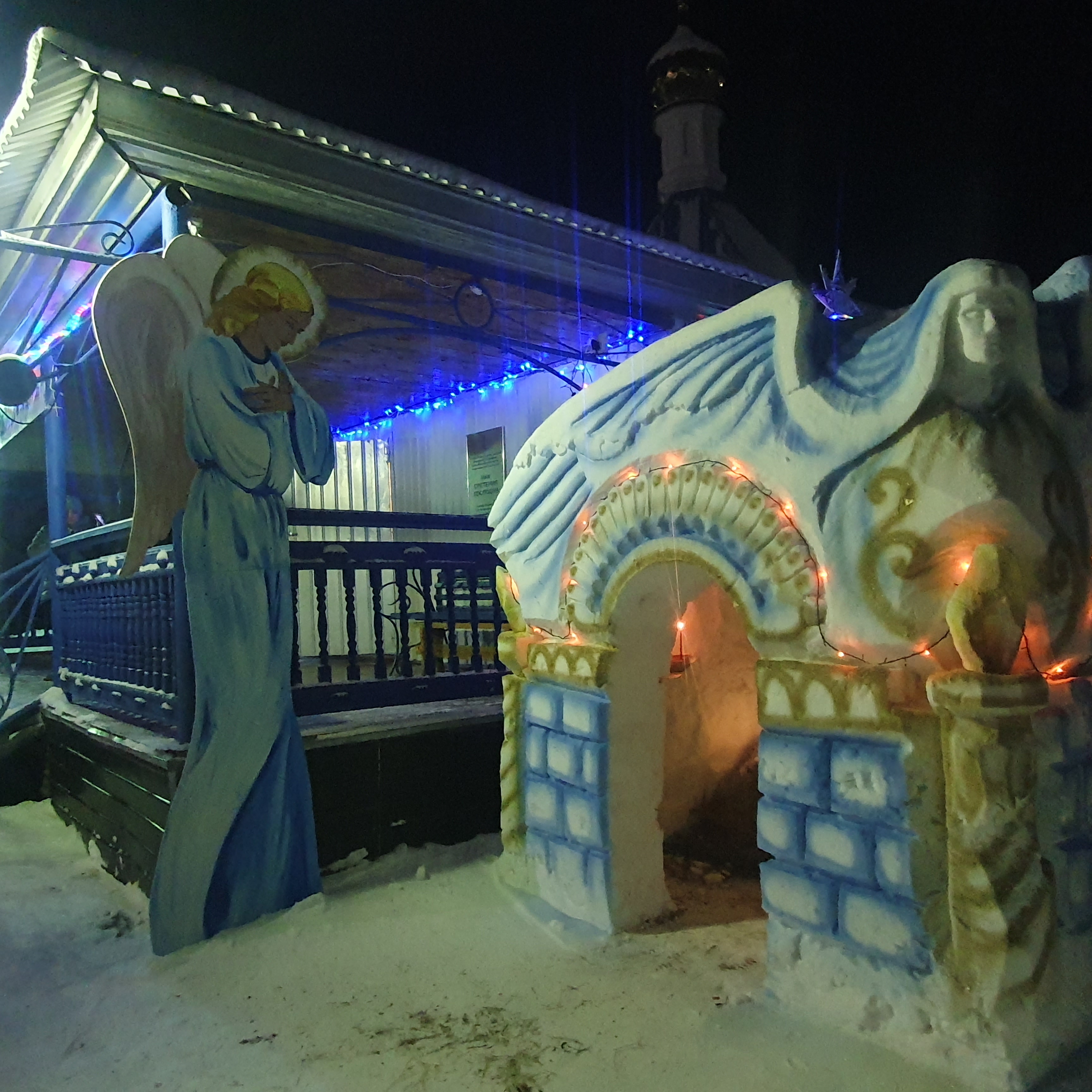 Около храма взрослых и детей ждал большой красивый вертеп, с любовью изготовленный прихожанами.