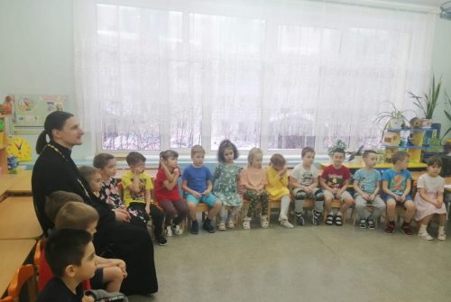 1 февраля клирик храма Покрова Божией Матери г.Мегиона иерей Илия Балабонкин побывал в детском саду №8 «Белоснежка» в гостях у старшей группы.