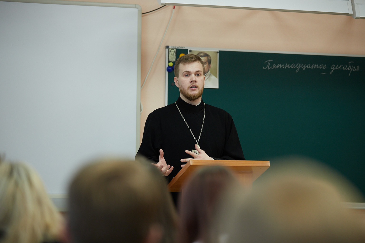 15.12.2022 Клирик храма в честь святителя Николая Чудотворца г. Сургута, иерей Николай Глухарёв, посетил МБОУ Сургутскую технологическую школу.