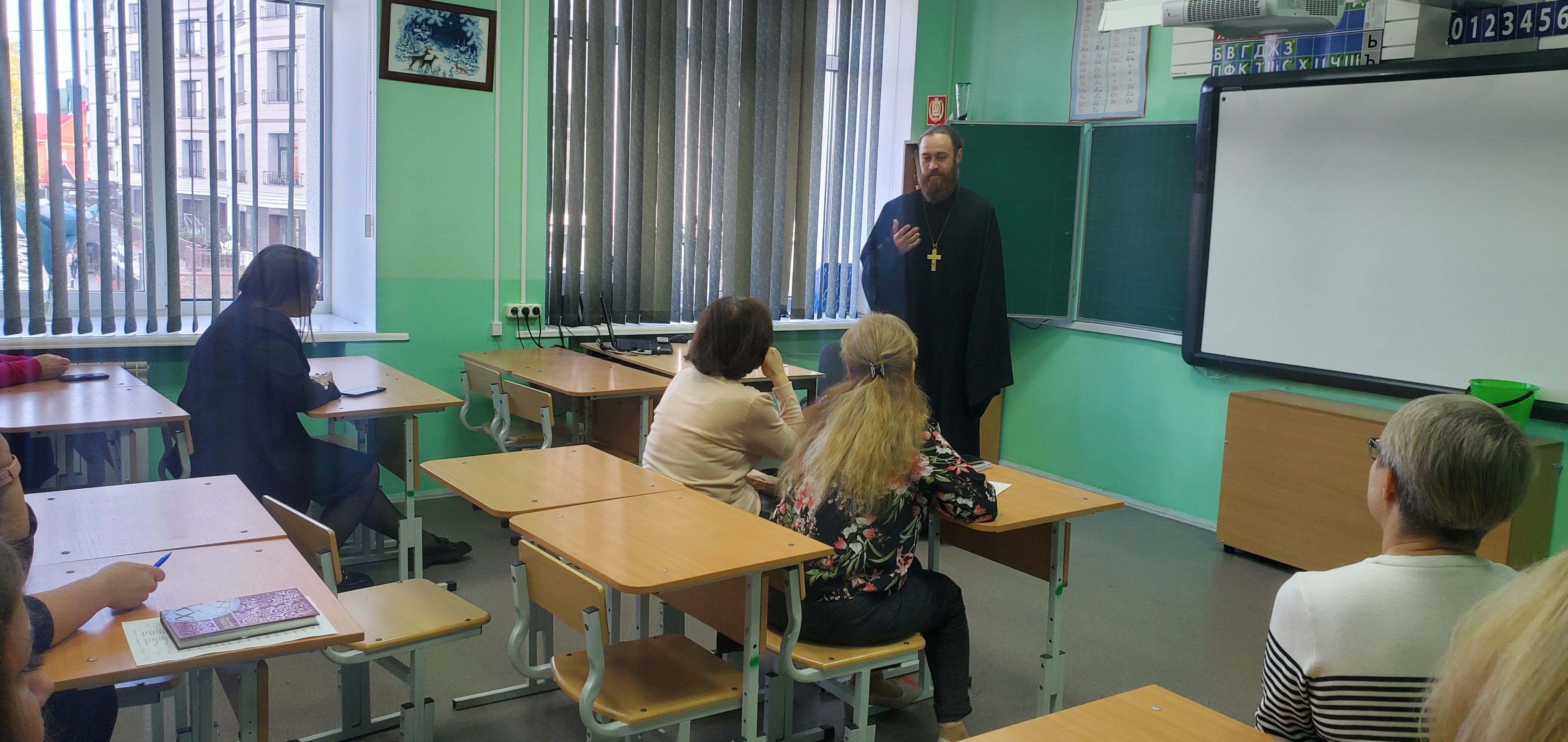 14 сентября 2022 состоялась встреча настоятеля храма прп. Сергия Радонежского иерея Игоря Логвина с педагогами МБОУ «СОШ №3». Разговор был на тему: «Духовный мир учителя» в рамках программы «Основы религиозных культур и светской этики».