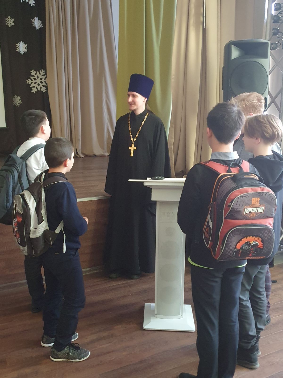 17 февраля клирик храма Покрова Божией Матери г.Мегиона иерей Илия Балабонкин принял участие в открытом уроке 5 классов школы №4 г.Мегиона.
