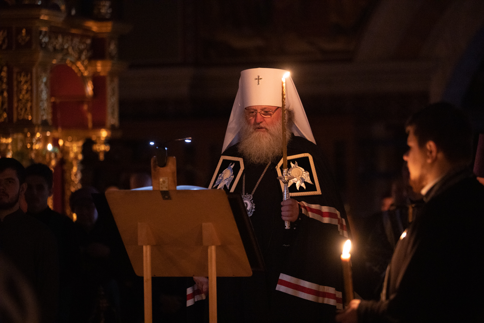 2 марта 2023 года в четверг первой седмицы Великого поста митрополит Ханты-Мансийский и Сургутский Павел совершил повечерие с чтением Великого канона прп. Андрея Критского в Воскресенском кафедральном соборе г. Ханты-Мансийска.