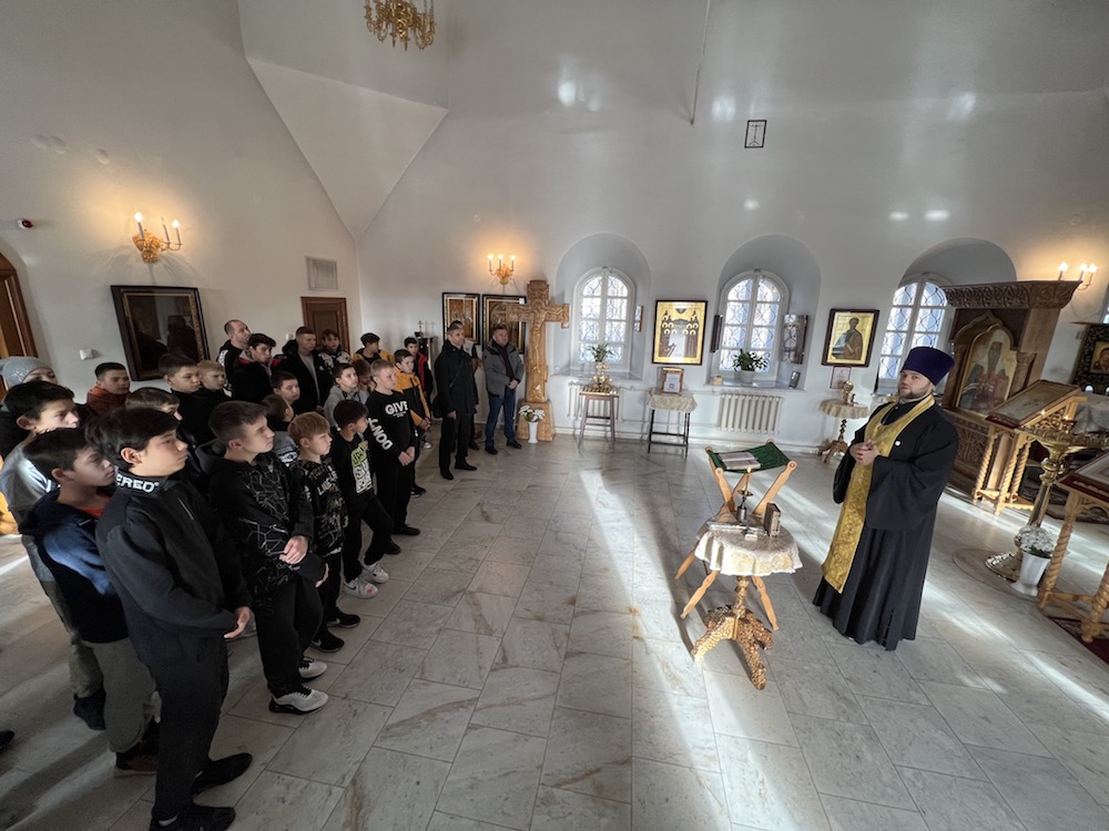 Участники VII открытого традиционного турнира по боксу «За други своя» посвященного памяти Преподобного Сергия Радонежского не только участвуют в соревнованиях, но и посетили историко-культурный памятник храм Вознесения Господня,