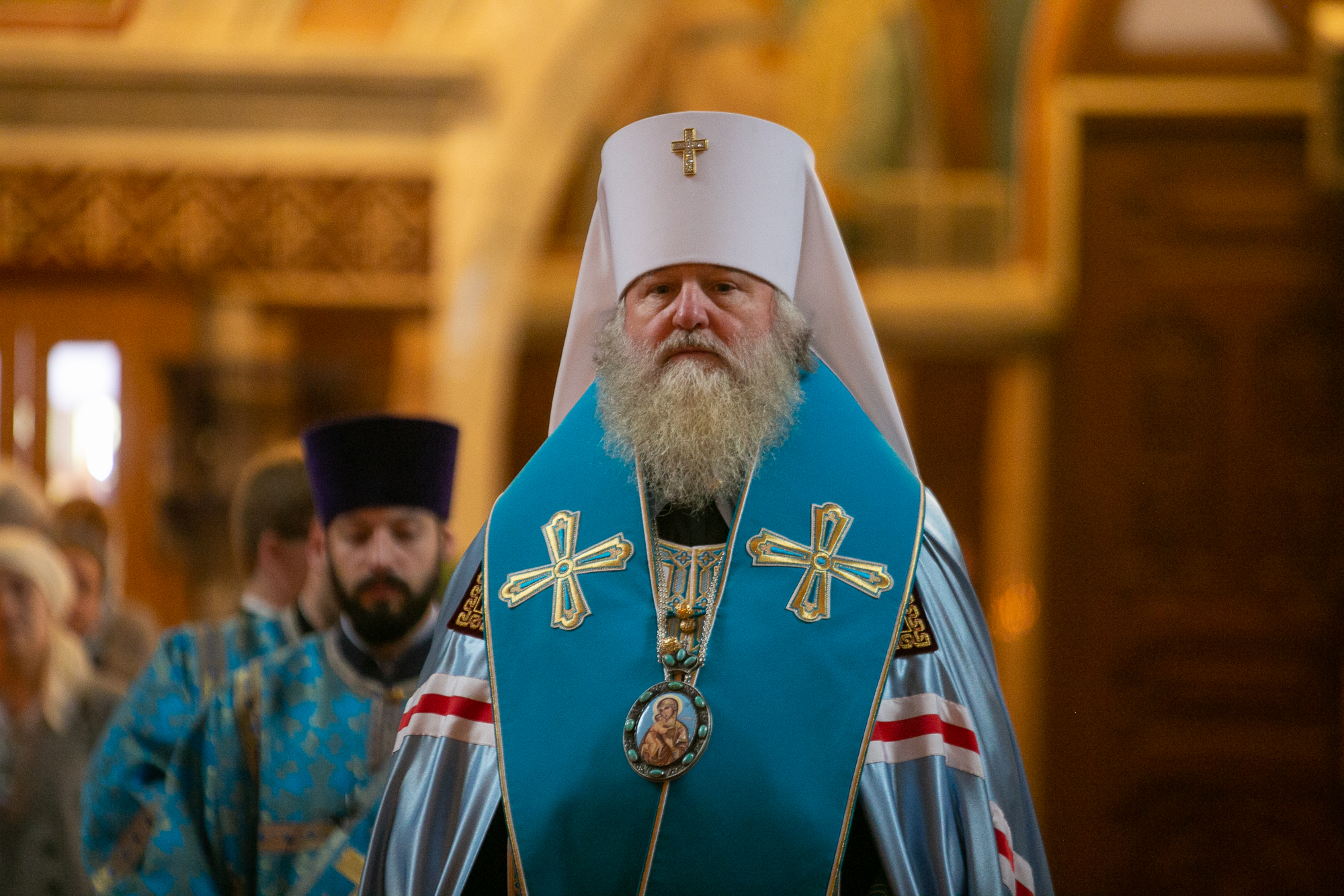 После великого славословия митрополит Павел возглавил крестный ход с плащаницей с изображением Успения Пресвятой Богородицы.