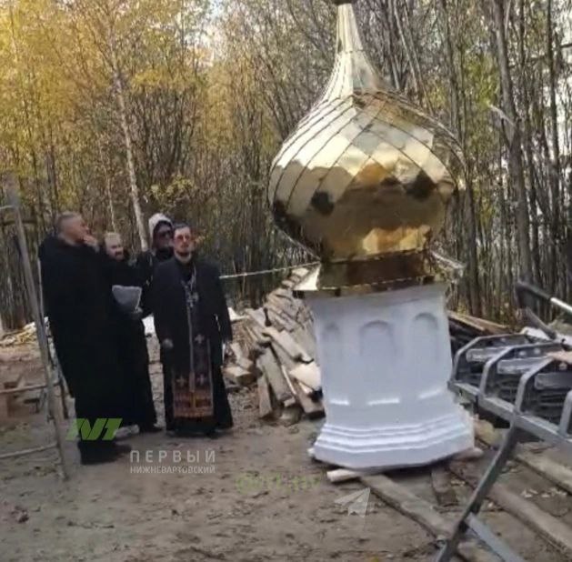 В Нижневартовске прошла церемония освящения купола с крестом у нового храма.