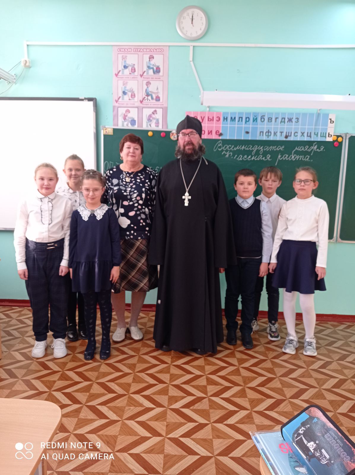 18 ноября 2022 г. настоятель храма «Сошествие Святого духа» п. Красноленинский посетил школу.