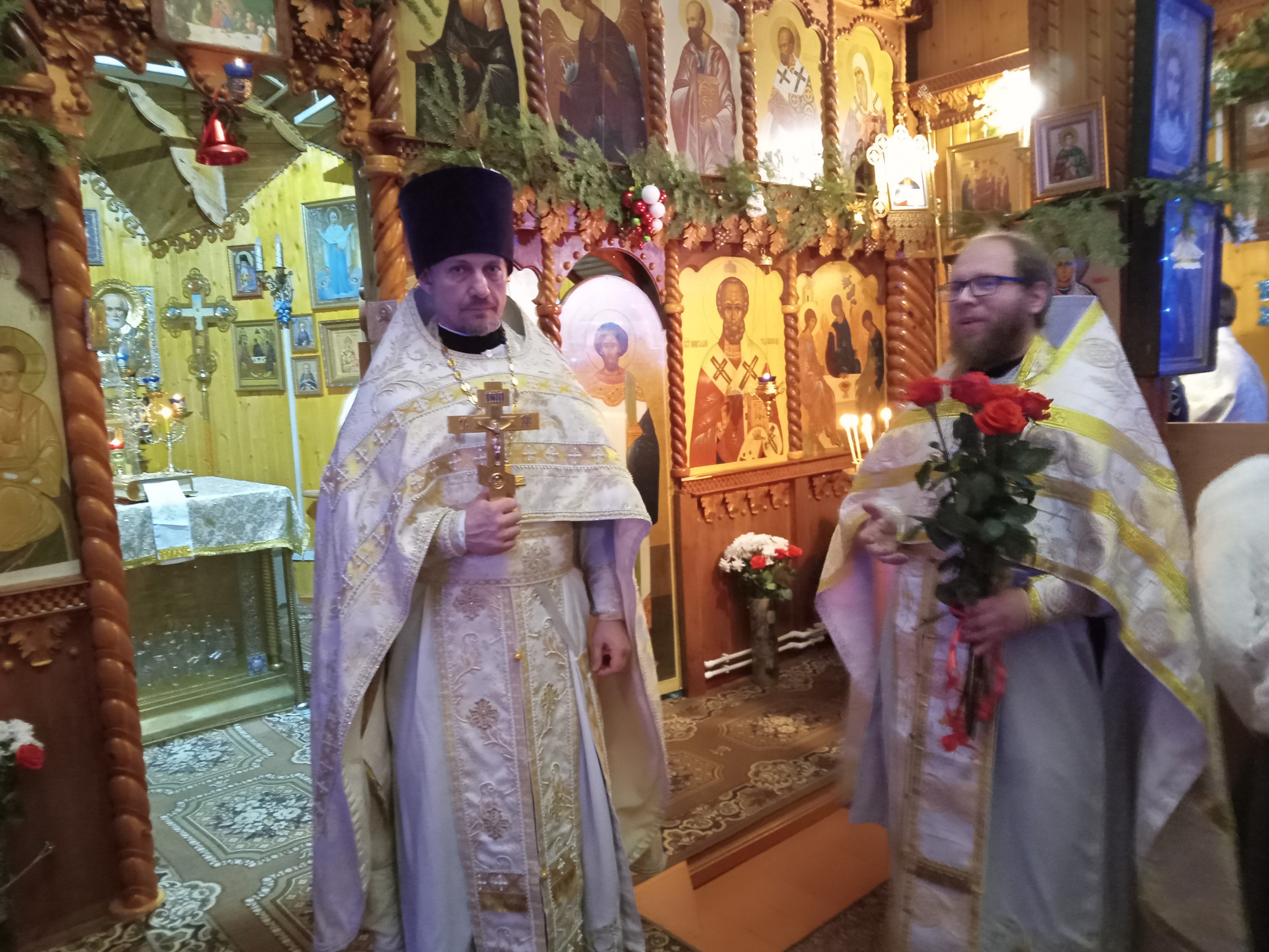 В ночь с 6 на 7 января в храме свт. Николая Чудотворца пгт. Белый Яр прошли торжественные богослужения в честь Рождества Христова. Служили настоятель протоиерей Георгий Кошелев и иерей Сергий Мартынюк. После Божественной Литургии прихожане поздравили настоятеля с 25-летним юбилеем служения в сане священника. Дети воскресной школы исполнили Рождественские колядки.