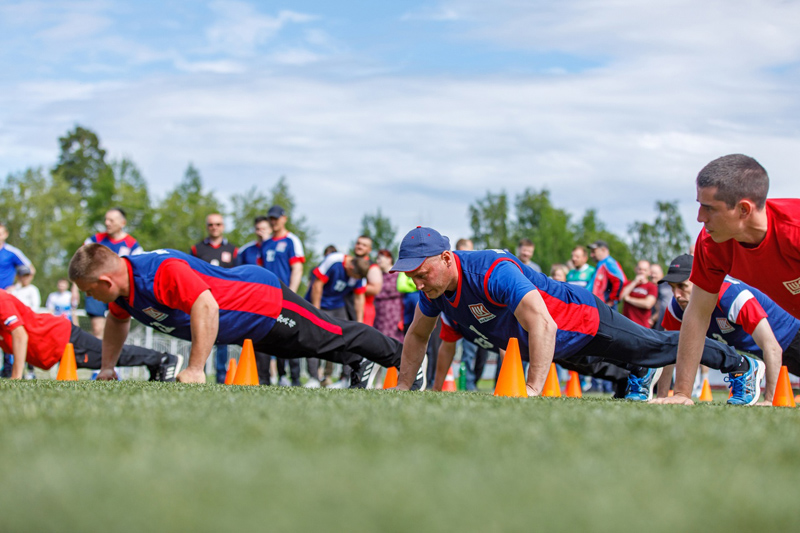На стадионе шквал аплодисментов! Ровесник города, 57-летний Игорь Лебедев, отжался 60 раз.