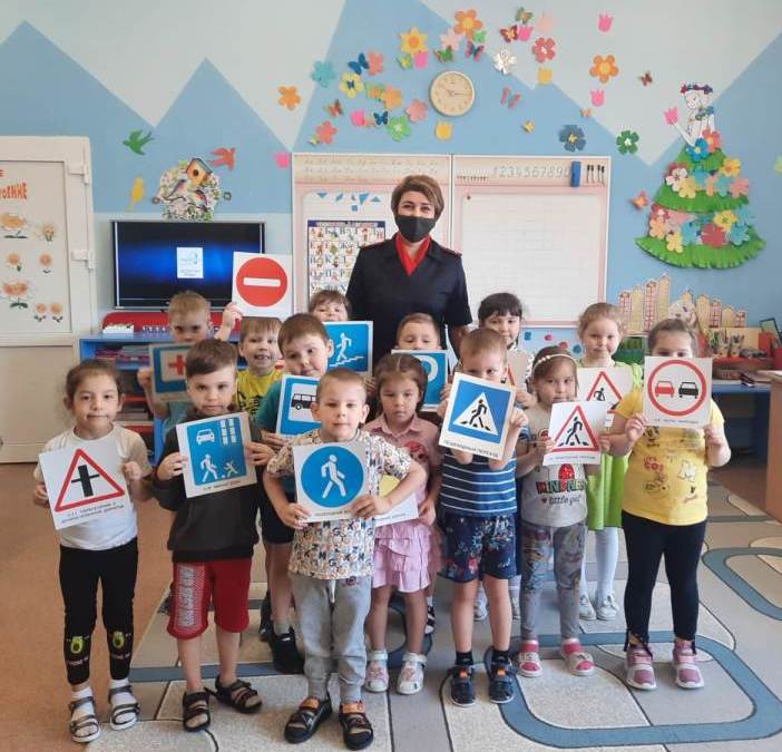 В рамках профилактической акции «Нам не всё равно!» сотрудники Госавтоинспекции Октябрьского района посетили воспитанников дошкольного звена Сергинской школы и рассказали детям о правилах поведения на улично-дорожной сети, правилах катания на велосипедах и самокатах, а также изучили и разобрали значения дорожных знаков.