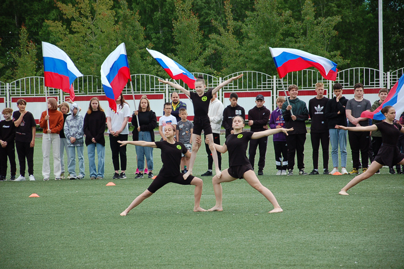 Красочное мероприятие проходит на протяжении нескольких лет. На этот раз провести его на стадионе чуть было не помешал обещанный синоптиками дождь. Но солнышко все же пробилось среди туч, юные спортсмены с российскими триколорами в руках выстроились по периметру футбольного поля. Зазвучали торжественные слова о празднике, о Родине, о том, в какой великой стране нам посчастливилось родиться и жить. И под музыку на центр площадки вышли воспитанники секции спортивной акробатики. Несмотря на юный возраст, за спиной у каждого из них несколько отданных лет спорту, ежедневных тренировок, преодоления себя. За той видимой легкостью, с какой они выполняли нереальные для большинства людей элементы, – огромный труд тренеров и титаническая работоспособность самих ребят.
