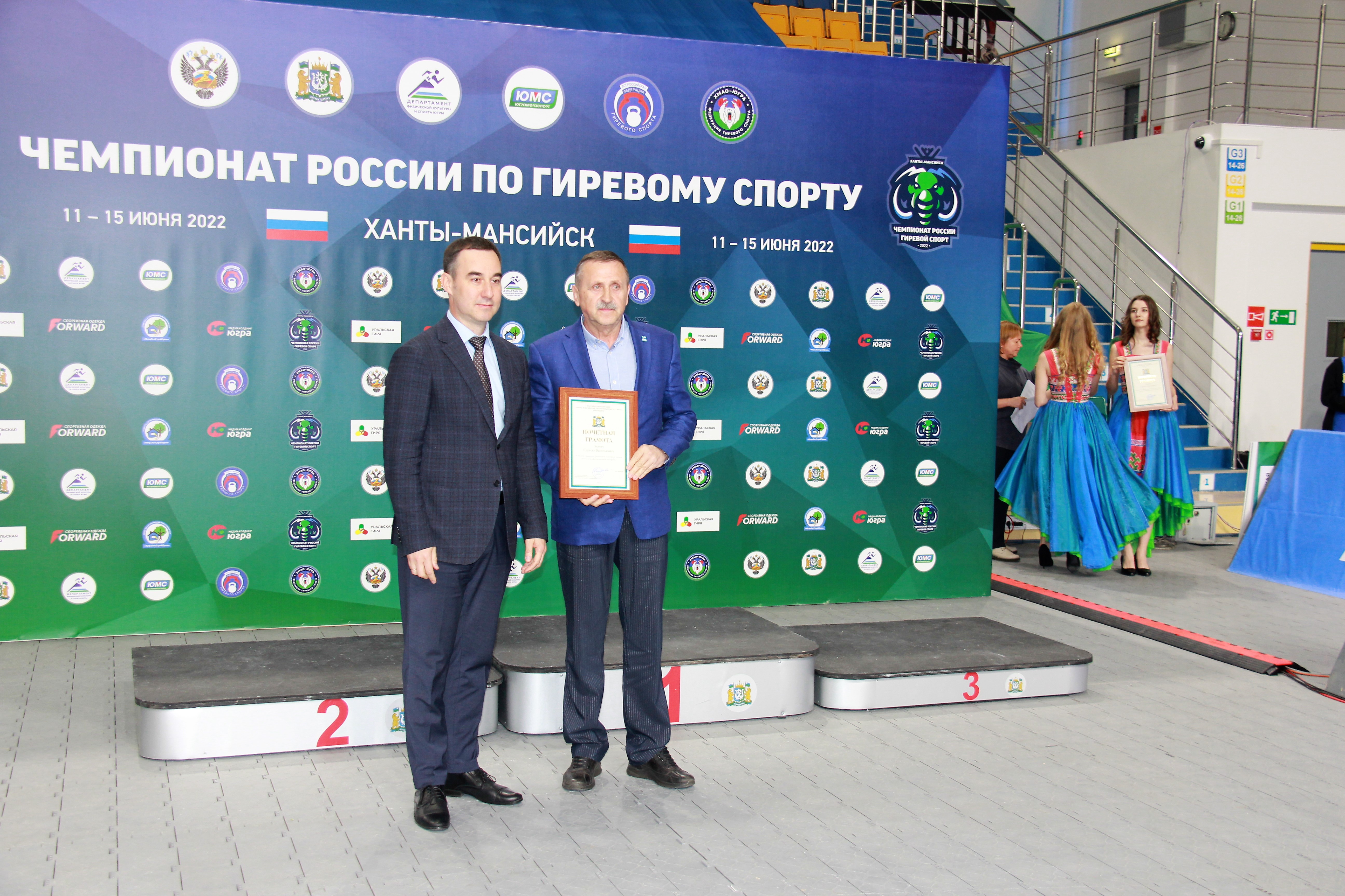 Награждение прошло в Центре развития теннисного спорта в Ханты-Мансийске, после подведения итогов чемпионата России по гиревому спорту. Вручал награды заместитель губернатора Юрий Южаков.
