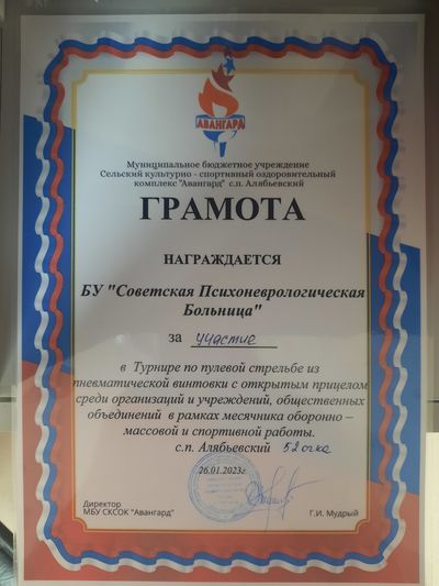 МБУ СКСОК «Авангард» с.п. Алябьевский вручил грамоты учреждению за активное участие и почетное III место.