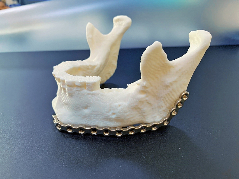 В Нижневартовской окружной клинической больнице врачи-челюсто-лицевые-хирурги в своей работе стали использовать 3D-принтер. Он позволяет медикам не только увидеть структуру костей в трёхмерном измерении, но и заранее подготовить необходимые инструменты и отверстия для операции. Предоперационная подготовка заключается в создании точной копии челюсти пациента. На модели проецируется и изгибается замещающая дефект титановая пластина, что обеспечивает идеальную подгонку перед имплантацией. Благодаря 3D-принтеру удается создать физическую копию челюсти пациента с максимальной точностью.