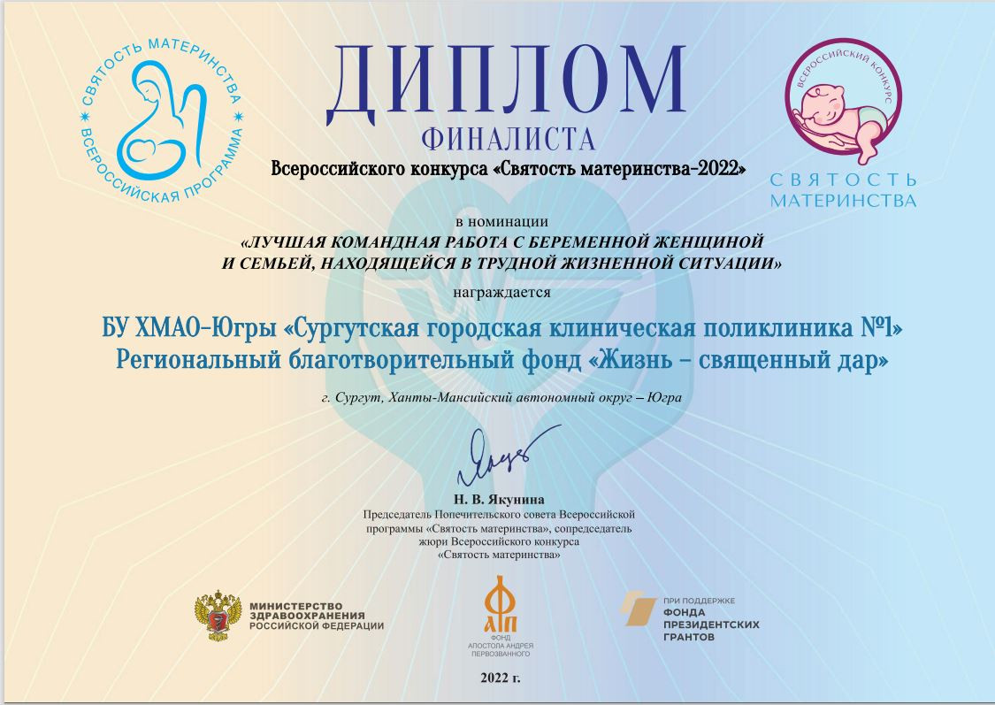 Напомним, уже два года подряд, наша женская консультация, совместно с благотворительным фондом «Жизнь - священный дар» становятся лауреатами в