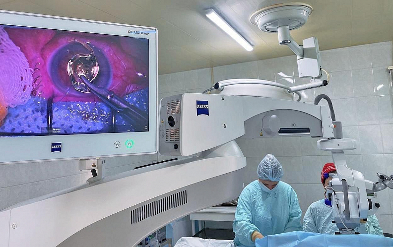 Операция факоэмульсификации проводится через 2,2 мм разрез: в камеру глаза вводится специальный микрохирургический инструмент, дробящий ядро катаракты, превращая её в эмульсию. Затем на место старого хрусталика устанавливается искусственный хрусталик, представляющий собой гибкую линзу, по краям которой закреплены опорные элементы – «усики», при помощи которых линза будет удерживаться в правильном положении. После операции на глазах не остаётся ни одного шва ,- рассказали в пресс-службе больницы.