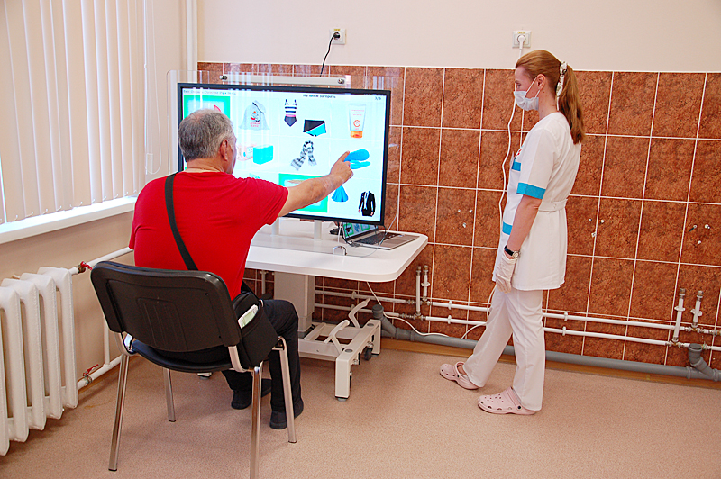 Сразу две интерактивные системы позволили оборудовать в больнице комнату эрготерапии, которая эффективно применяется в реабилитации после инсульта.