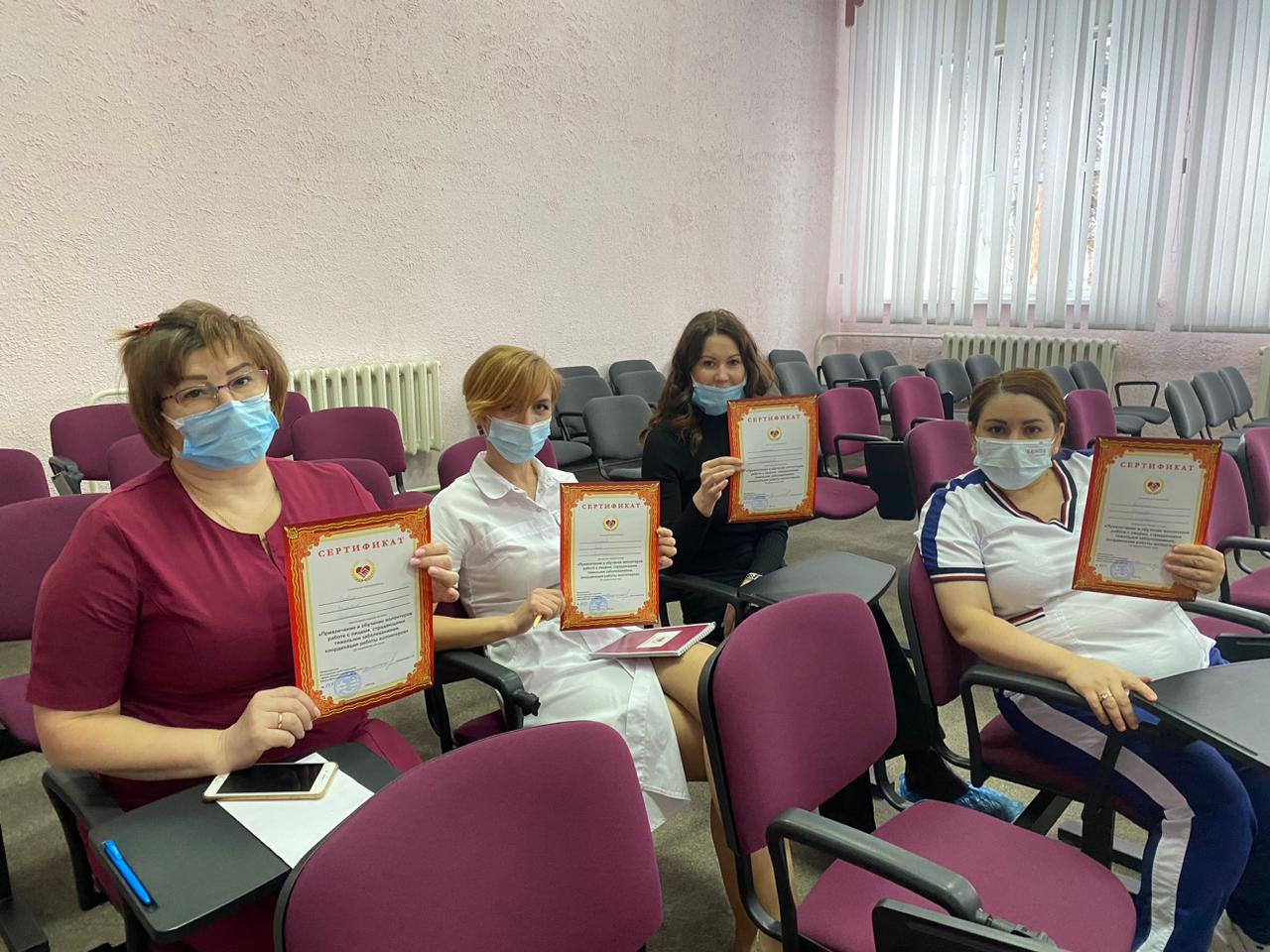 Сотрудникам медучреждения рассказали об основных правовых нормах добровольчества, правилах отбора и формирования команды волонтеров из числа медицинских работников, приёмах мотивации, определении границ ответственности, а также обучили оказанию помощи вне стационара.