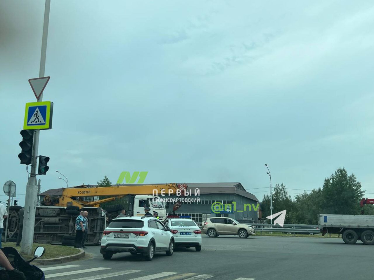 В Нижневартовске (ХМАО) произошло ДТП со скорой помощью. После столкновения машина с медиками перевернулась.